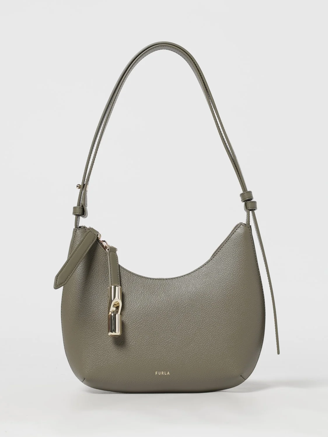 DESCRIPTION - Logo: Back, Laminated - Model: Shoulder - Closure: With zip - Shape: Round - Handle: Adjustable - Materials: Grained leather - Pattern: Plain-colored DETAILS AND CARE Composition 0735E100 LEATHER I 90%PL10%LEATHER SIZE AND FIT Sizes Width : 22 cm Height: 21 cm Depth: 7,5 cm Designer code: WB01500BX3353 2810S Giglio Code: 434384 Designer: Furla Collection: Furla Woman Category: Bags Furla