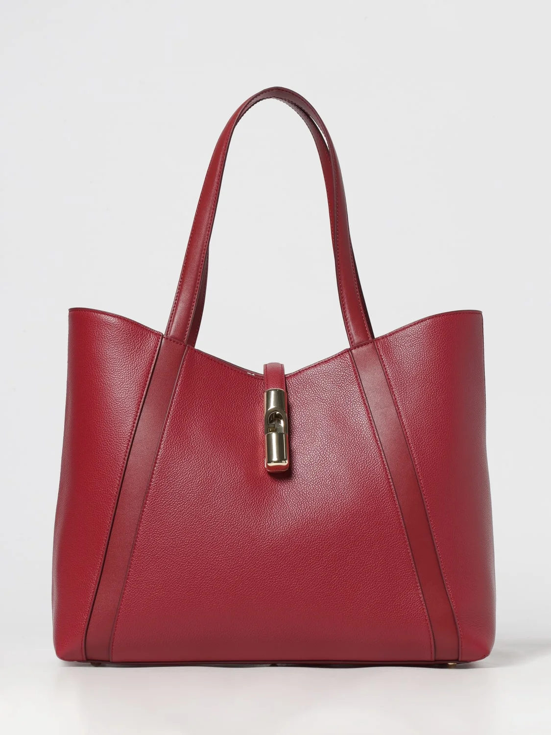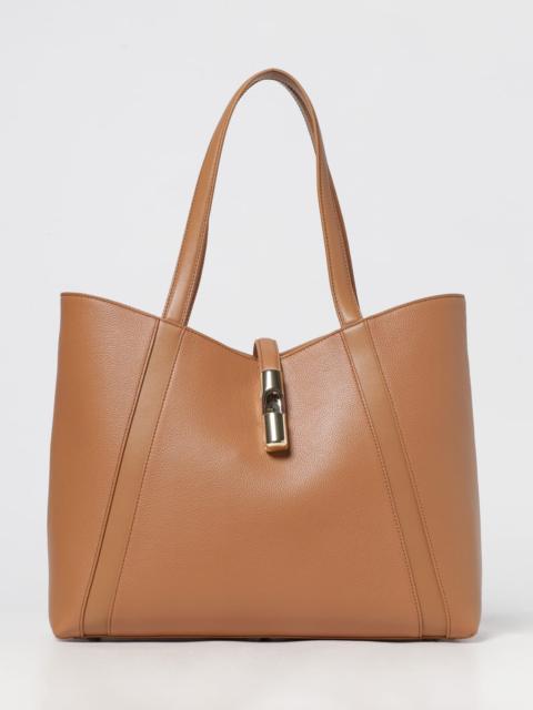 DESCRIPTION - Logo: Metallic, Monogram - Lining: With zip pocket - Model: Shoulder - Bottom: Metal, With protective feet at the bottom - Shape: Rectangular - Handle: Double - Closure: With tab and magnetic button - Materials: Grained cowhide, Smooth cowhide - Pattern: Plain-colored DETAILS AND CARE Composition 100%LEATHER SIZE AND FIT Sizes Width : 33,5 cm Height: 31 cm Depth: 11 cm Designer code: WB01788BX3353 CGQ00 Giglio Code: 434414 Designer: Furla Collection: Furla Woman Category: Bags Furla