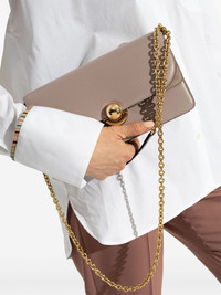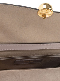 small Sfera cross body bag Highlights - Sesame beige - Foldover top - Chain-link shoulder strap - Main compartment - Internal zip-fastening pocket Made in Italy Composition Lining: Suede 100%, Nylon 40%, Polyurethane 40%, Polyester 20% Outer: Calf Leather 100% SIZE & FIT Measurement DEPTH 1.77 in(4.5 cm) HEIGHT 4.72 in(12 cm) WIDTH 8.46 in(21.5 cm)