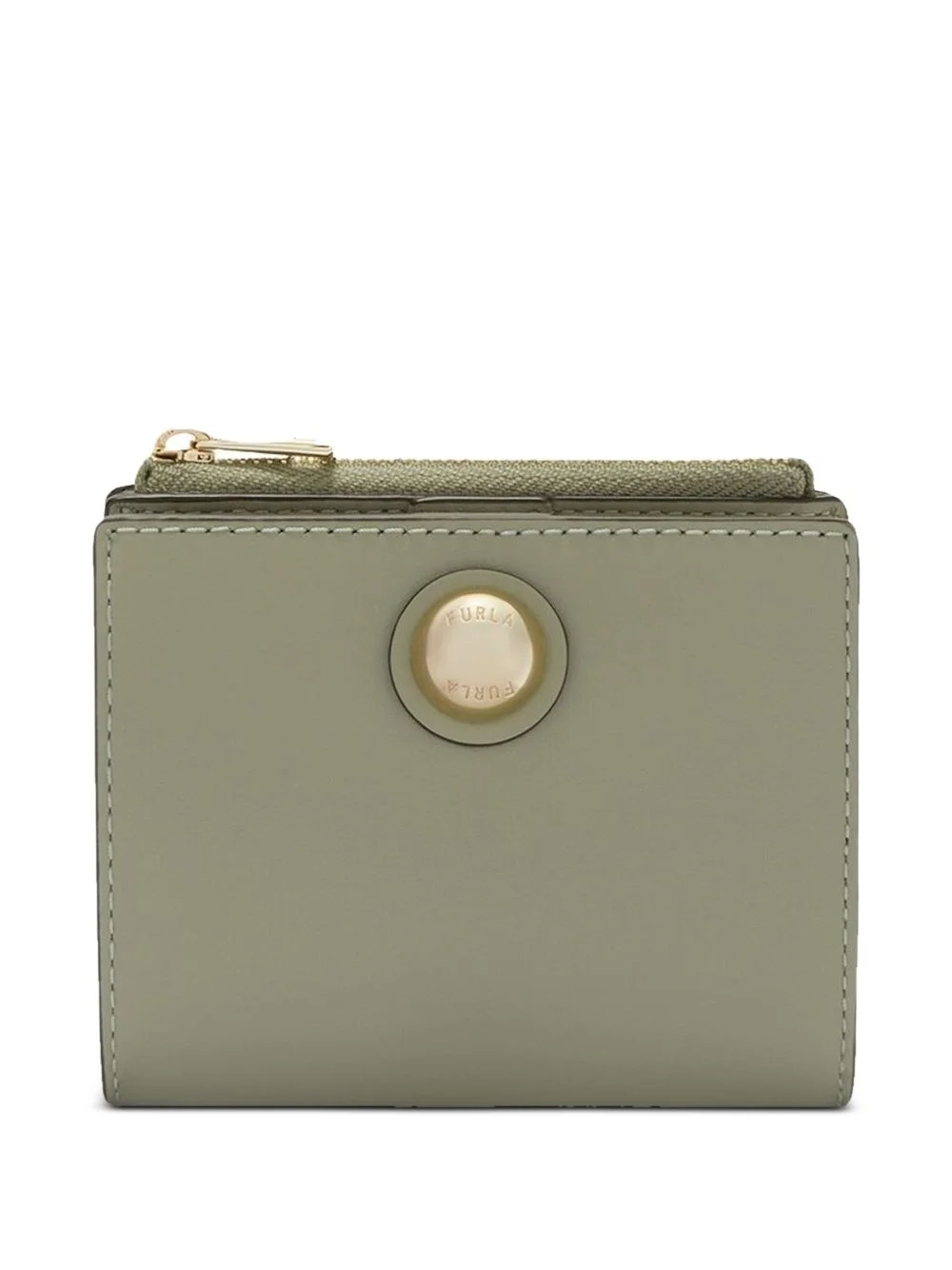 small Sfera wallet Highlights - Sage green - Concealed press-stud fastening - Bi-fold design - Side zip-fastening pocket - Internal card slots Imported Composition Lining: Viscose 100% Outer: CALFSKIN 100% SIZE & FIT Measurement LENGTH 4.33 in(11 cm) WIDTH 3.54 in(9 cm)