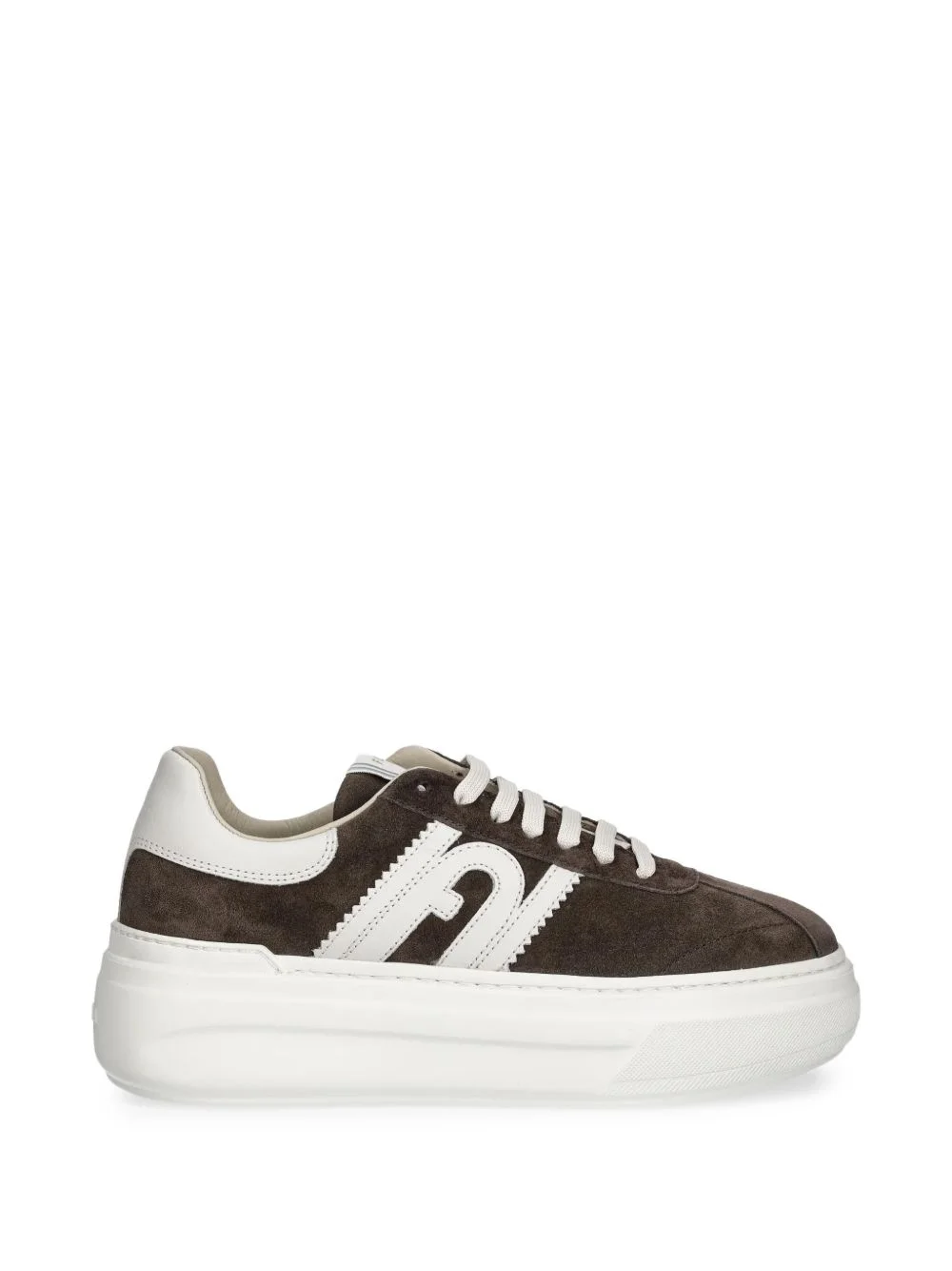 logo trainers Highlights - Dark brown and white - Logo applique - Contrast heel counter - Round toe - Front lace-up fastening - Platform sole Imported Composition Calf Suede 100%, Fabric 100%, Rubber 100%