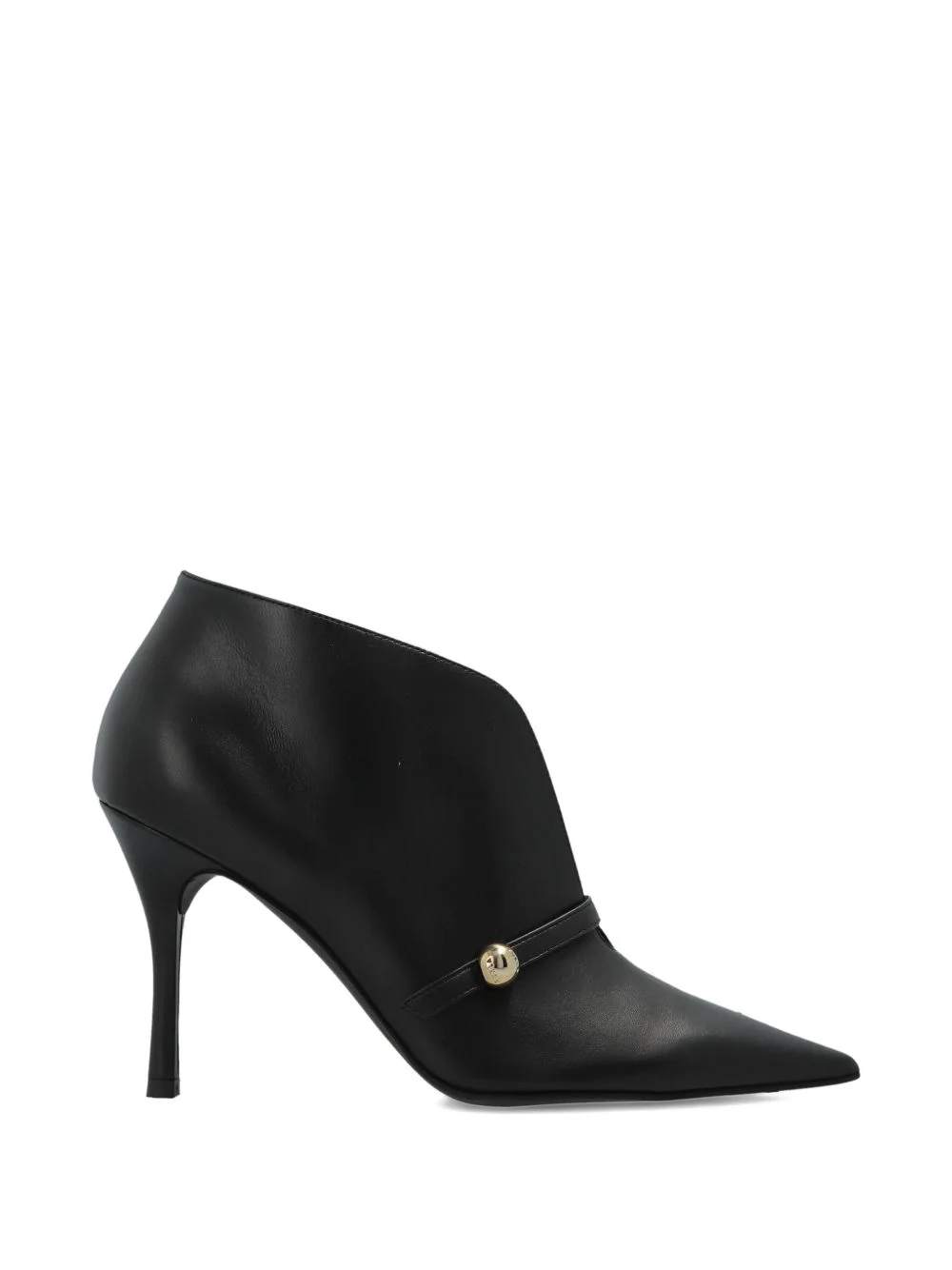 strap heeled boots Highlights - Black - Sheepskin - Pointed toe - Cut-out detail - Gold-tone hardware - Stiletto heel Made in Italy Composition Outer: Calf Leather 100% Lining: Calf Leather 100%, Fabric 100% Sole: Rubber 100% SIZE & FIT Measurement HEEL 3.93 in(10 cm)