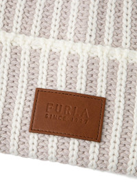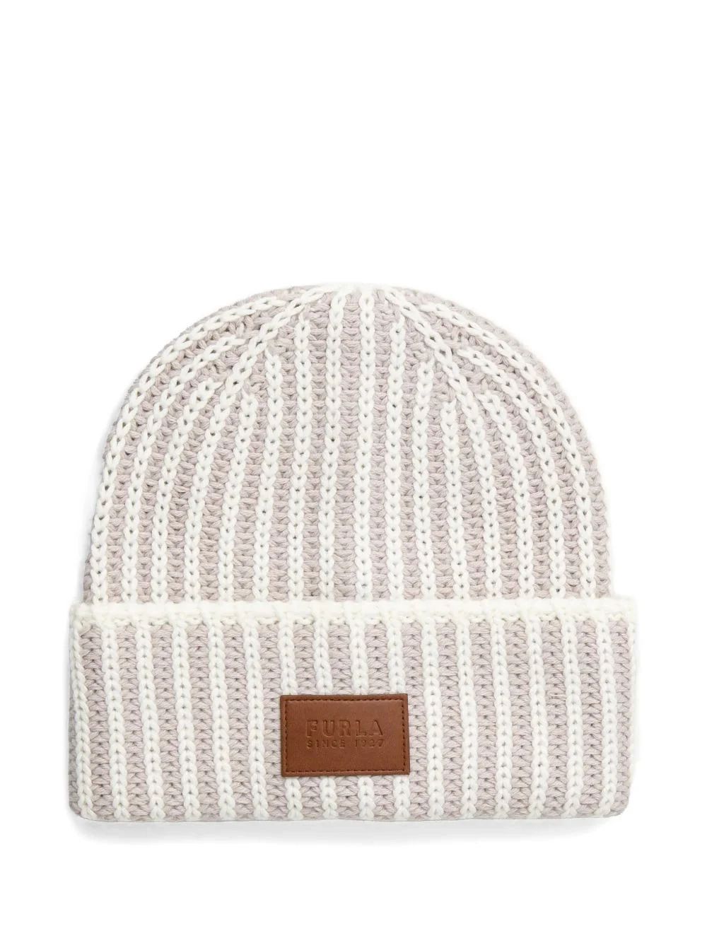 striped logo-patch beanie Highlights - Beige - Striped pattern - Leather patch - Knit texture - Ribbed brim - Fold-over top Imported Composition Wool 50%, Acrylic 50%