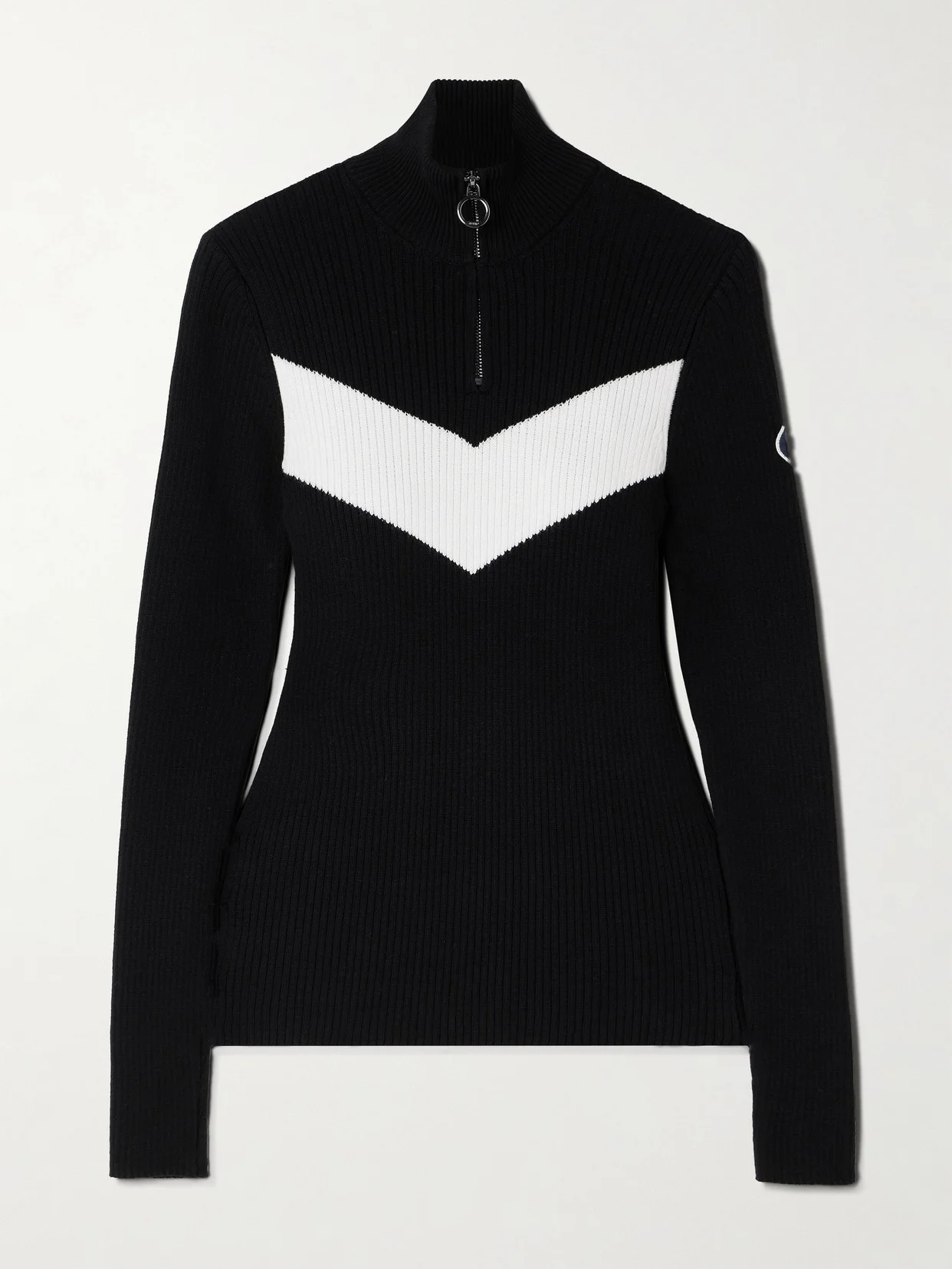 Andromede Striped Ribbed-knit Half-zip Sweater