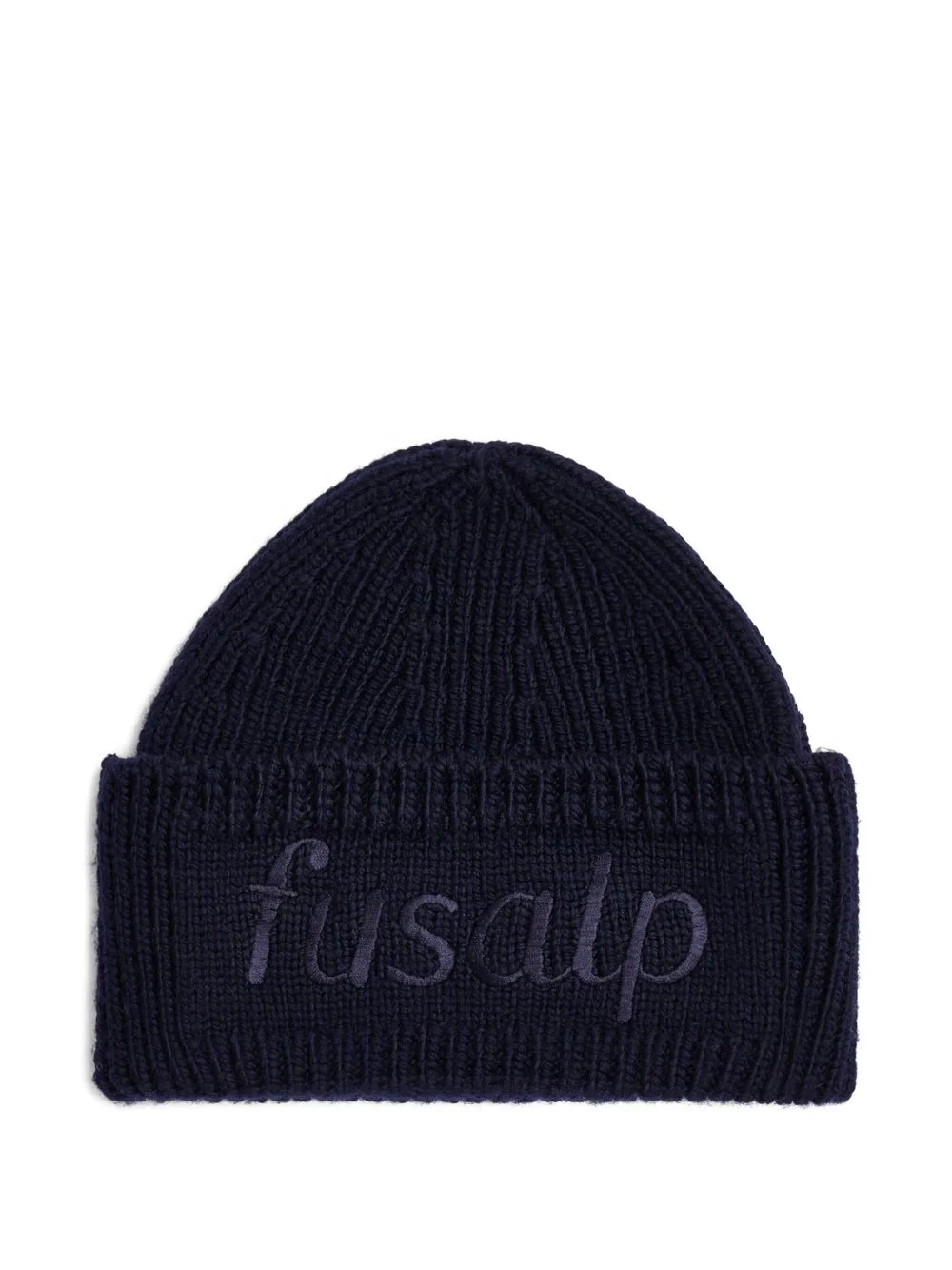 embroidered ribbed beanie Highlights - Navy blue - Ribbed knit - Embroidered logo - Wool Imported Composition Wool 100%