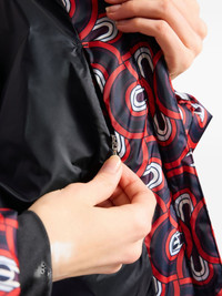 quilted ski jacket Highlights - Red and blue - Patterned - Quilted shoulders - Integrated hood - Zip fastening - Side zip pockets Imported Composition Outer: Polyester 76%, Polyurethane 24% Washing instructions Read Manufacturer Guidelines