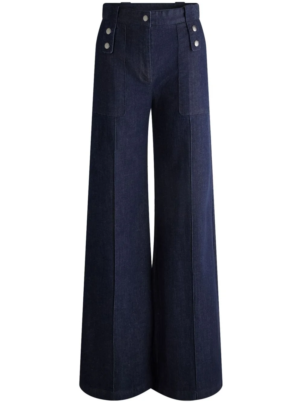 Noela wide-leg jeans Highlights - Blue - Cotton blend - Denim - Decorative button detailing - Belt loops - Front button and zip fastening - Pressed crease - Two front patch pockets - Two rear welt pockets - Wide leg Imported Composition Outer: Cotton 98%, Elastane 2% Lining: Polyester 96%, Spandex/Elastane 4% SIZE & FIT FittingInformation Designed with a wide leg cut, these jeans allow for a close fit at the waist and offer a loose and roomy fit over the leg