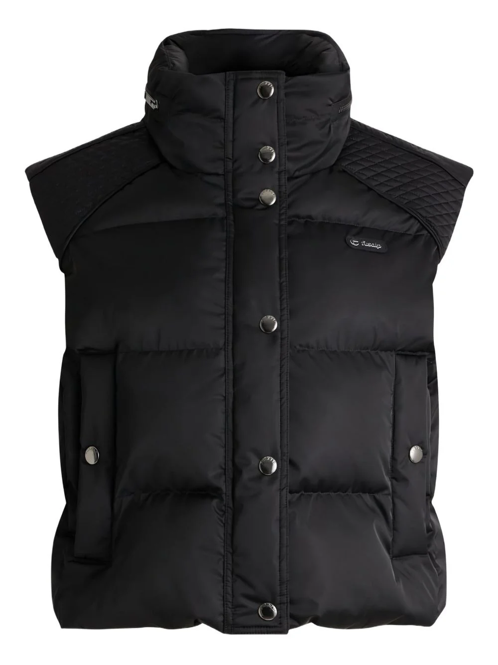 quilted gilet Highlights - Black - Quilted - Shoulder panels - Snap button fastening - Concealed hood - Side pockets Imported Composition Outer: Polyester 76%, Polyurethane 24% Lining: Polyester 94%, Elastane 6% Washing instructions Read Manufacturer Guidelines