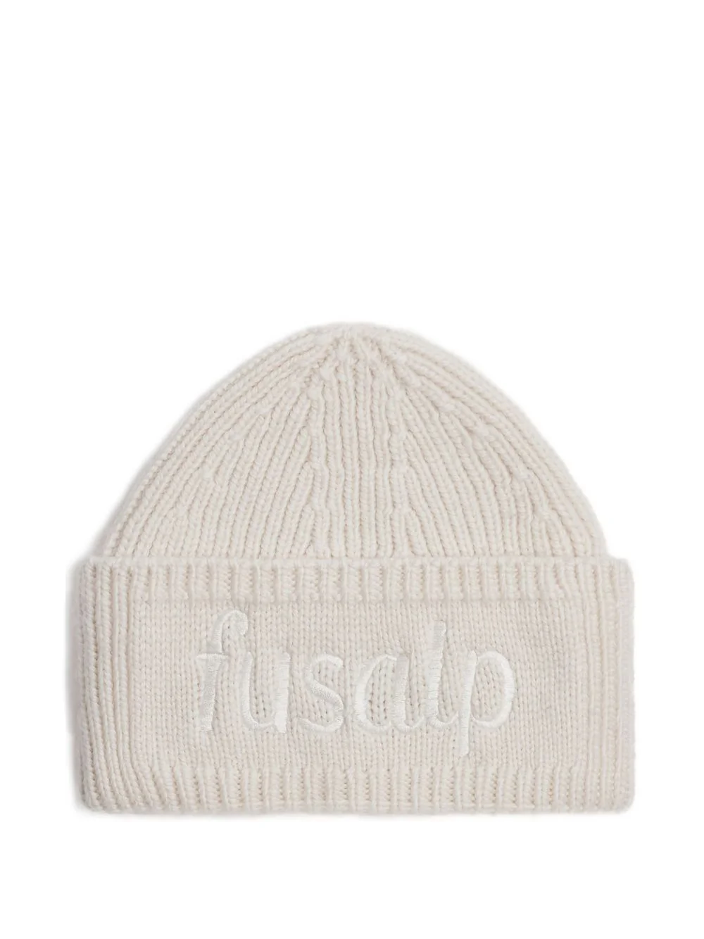 ribbed-knit beanie Highlights - Beige - Ribbed knit - Embroidered logo - Wool Imported Composition Wool 100%