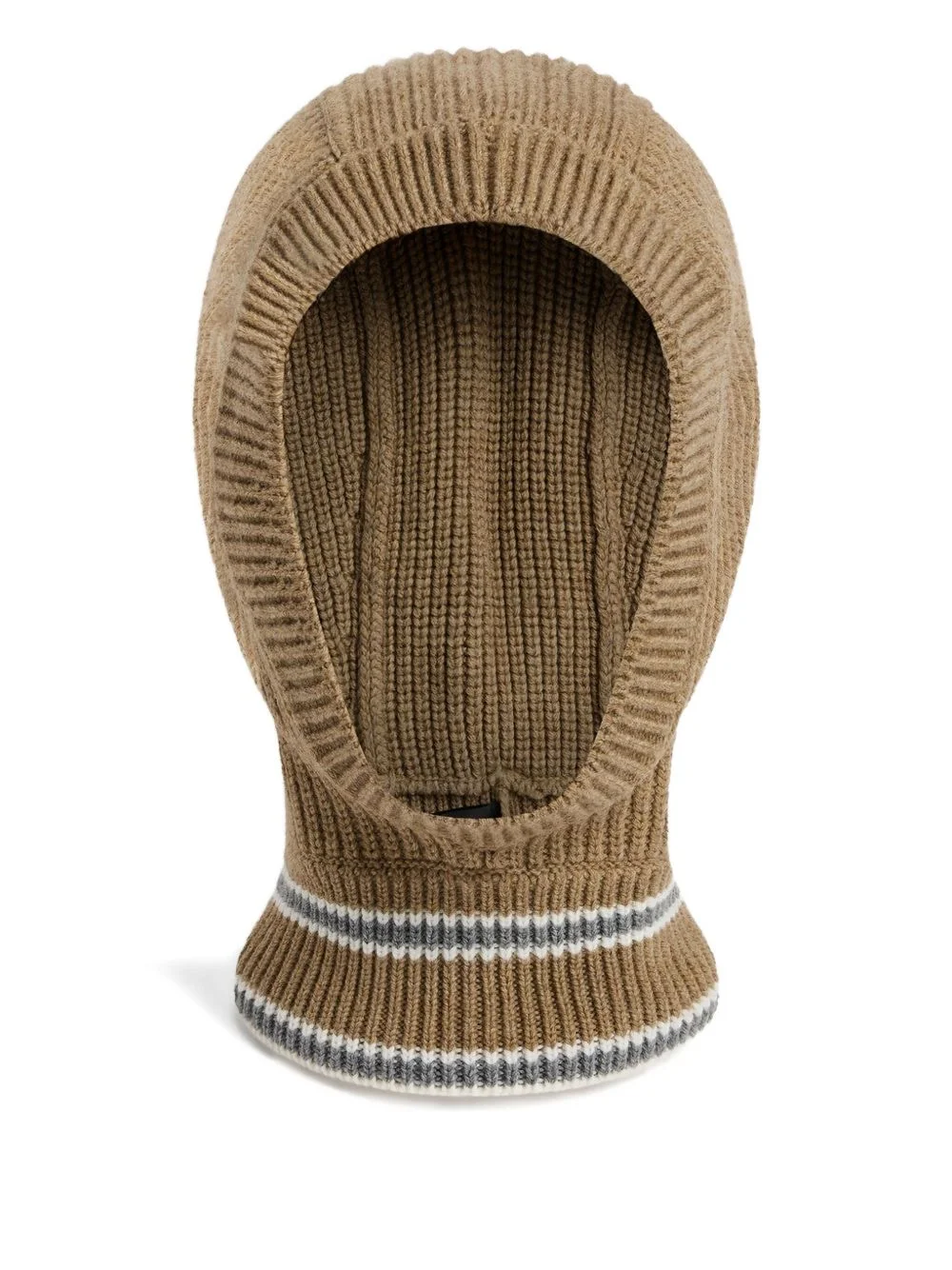 ribbed wool balaclava Highlights - Brown - Ribbed knit - Hooded design - Striped trim - Wool material Imported Composition Wool 100%