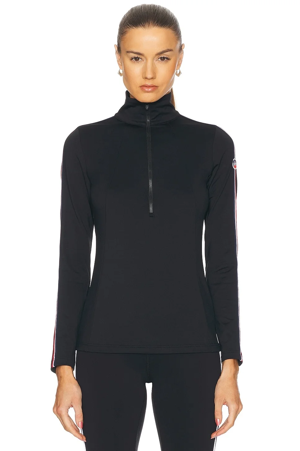 Details - 90% polyester, 10% elastane - Made in Tunisia - Machine wash - Front partial zipper closure - Stand collar styling - Logo detail at sleeve - Jersey fabric - Our Style No. FUSF-WS2 - Manufacturer Style No. E1135