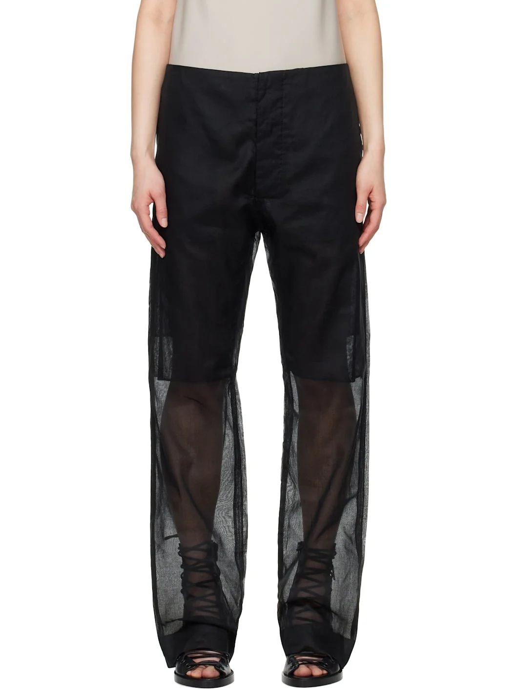 Sheer cotton taffeta trousers. · Button fastening at waistband · Two-pocket styling · Button fly · Partially lined Each item is unique. Please note finishings may vary. Supplier color: Black 100% cotton. Made in Spain 251282F087003