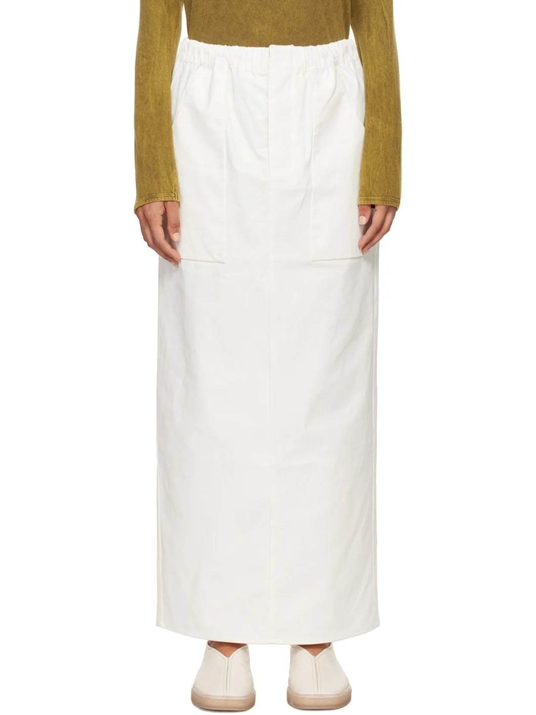 Polyurethane-coated cotton twill skirt. · Concealed drawstring at elasticized waistband · Four-pocket styling · Button-fly · Central vent at back hem Part of the Serie No.15 collection. Supplier color: White 95% cotton, 5% polyurethane. Made in Spain 242282F092001