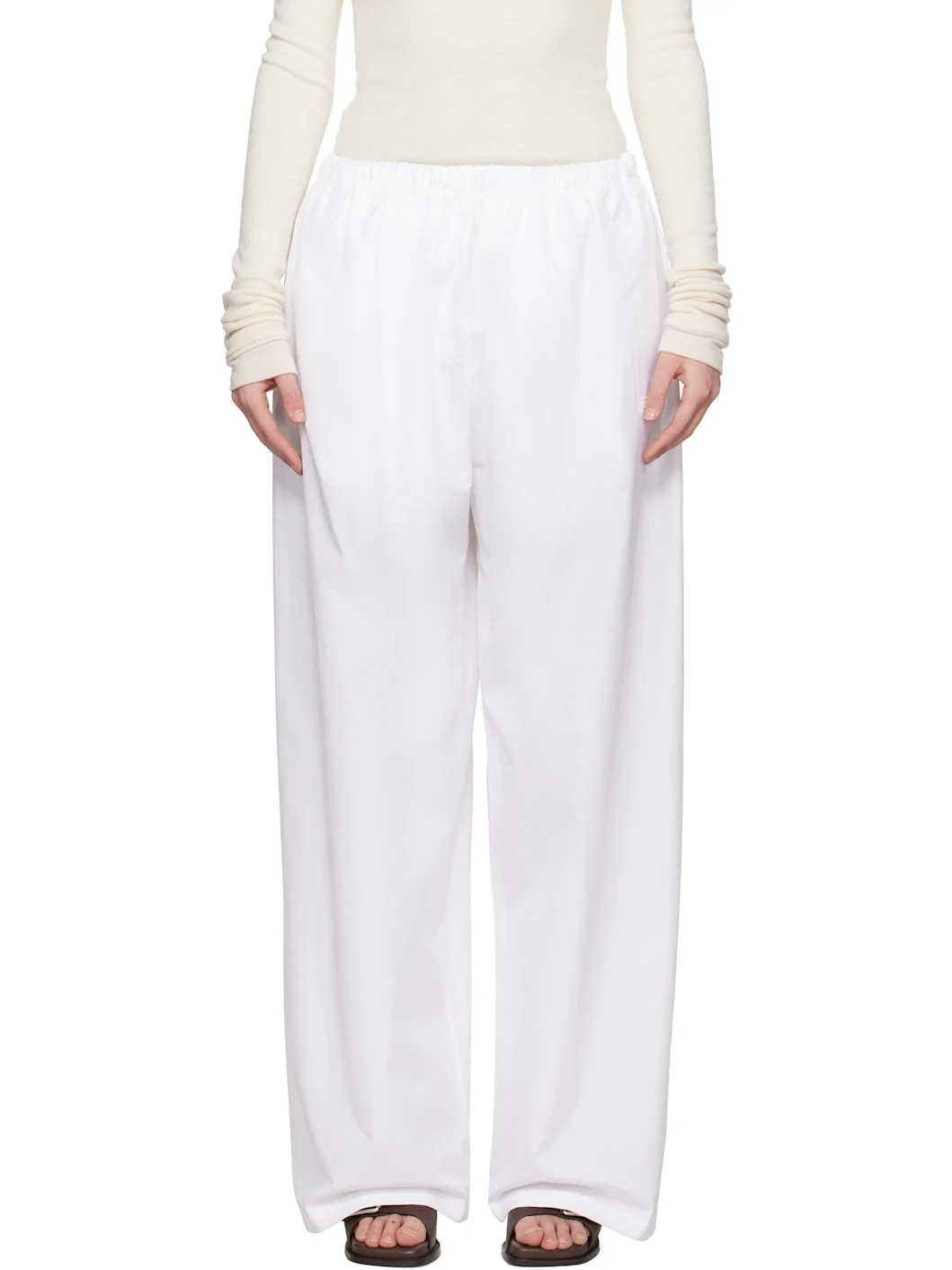 Handcrafted cotton poplin trousers. · Concealed drawstring at elasticized waistband · Two-pocket styling Supplier color: White 100% cotton. Made in Spain 251282F087002