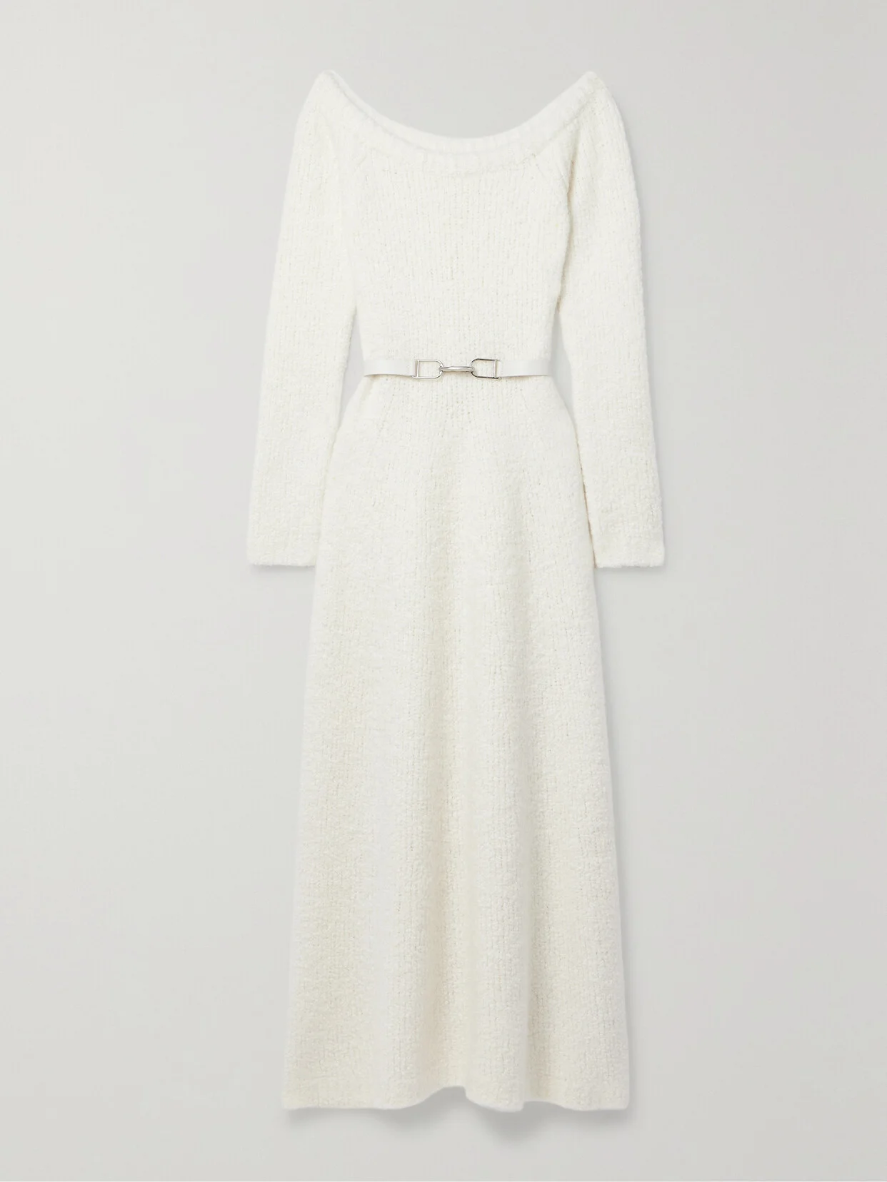 EXCLUSIVE AT NET-A-PORTER. Gabriela Hearst's 'Gertrude' maxi dress is made from organic cashmere-boucle that's blended with silk to give it an incredibly soft and luxurious feel. It has an elegant off-the-shoulder neckline and cinches at the waist with an equestrian-style leather belt. This product was created using Considered Materials and supports best practice in Animal Welfare. Find out more about NET SUSTAIN here.