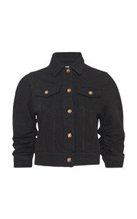 The Adira Jacket in 100% GRS recycled cotton denim is precisely cut at the waist; a classic button-front denim silhouette reimagined with cinched sleeves. Details: - 100% GRS Recycled Cotton - Cropped length - Pointed collar - Front button closure - Chest flap pockets with buttons - Cinched sleeves - Made in Italy Size and Fit: Fits true to size. Model is 5'11" and wearing a size S.