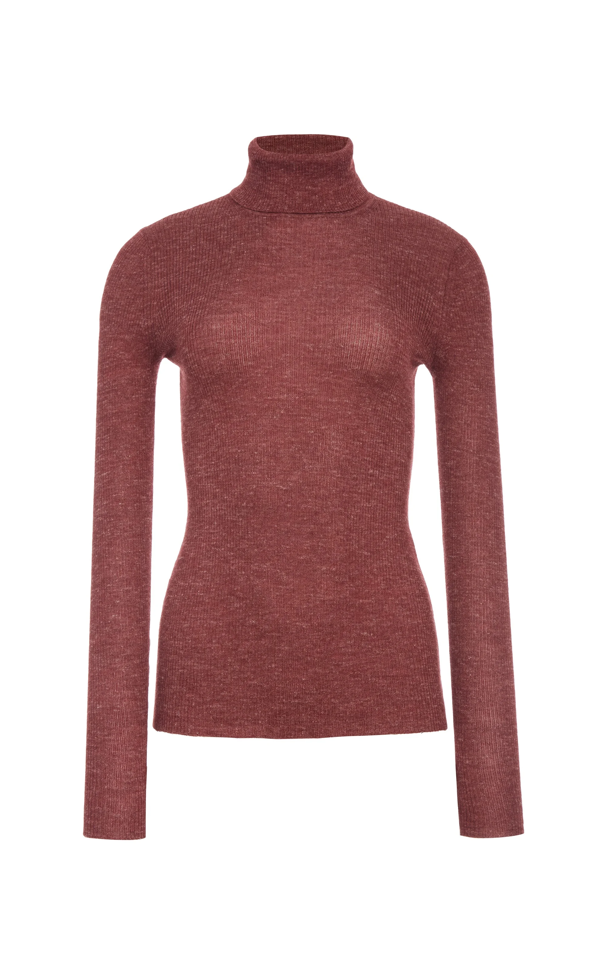 Aldona Knit Turtleneck in Burnt Sienna Cashmere Silk with Hemp