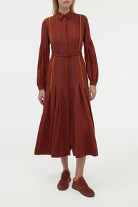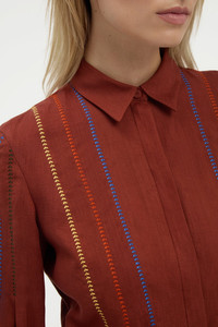 Aleka Pleated Midi Shirtdress in Burnt Sienna Multi Aloe Linen