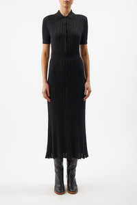 Knitwear is a cornerstone of the Gabriela Hearst brand. We use cashmere and silk from the finest sources to create pieces that embody an attitude of modernity, timelessness and elegance. The Amor Dress features ribbed short sleeve, a collar and self-covered button placket. Details: - 70% Cashmere, 30% Silk - Made from Italian yarns Size and Fit: Fits true to size. Model is 5'11"" and wearing a size S.