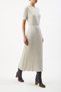 Amor Ribbed Dress in Ivory Silk Cashmere