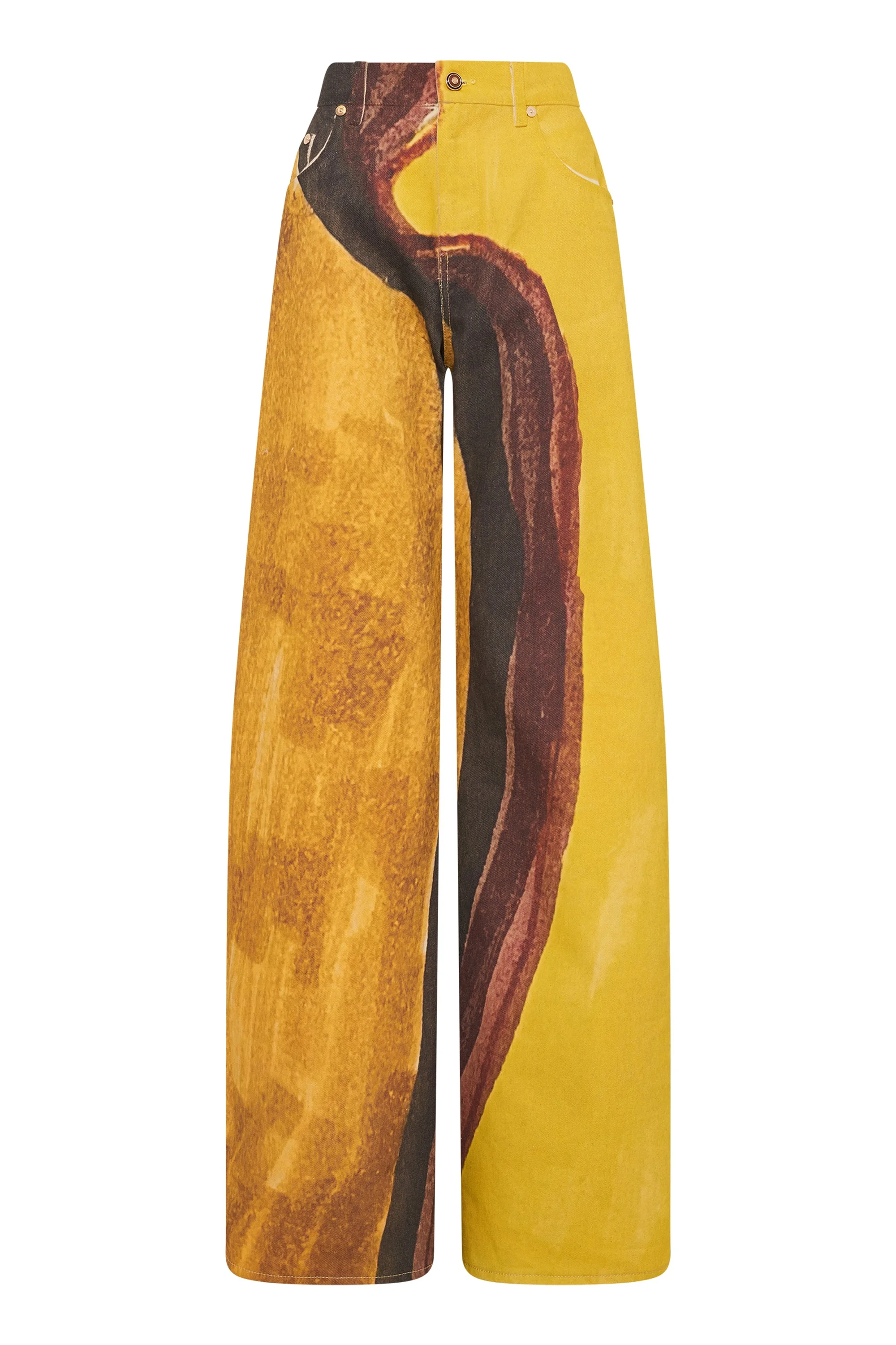 The Amoret Jean is crafted from printed recycled denim, offering a lightweight feel with a structured look. Designed with a classic five-pocket construction and a barrel-leg silhouette, it is finished with custom hardware at the waistband. Printed with Gabi’s hand-drawn sketches, the Amoret Jean transforms into a canvas-each drawing inspiration from the enigmatic Major Arcana of the Tarot de Marseille. Details: - 100% Recycled Denim - Button fly and closure - Belt loops - Barrel Leg - Five-pocket detail - Made in Italy