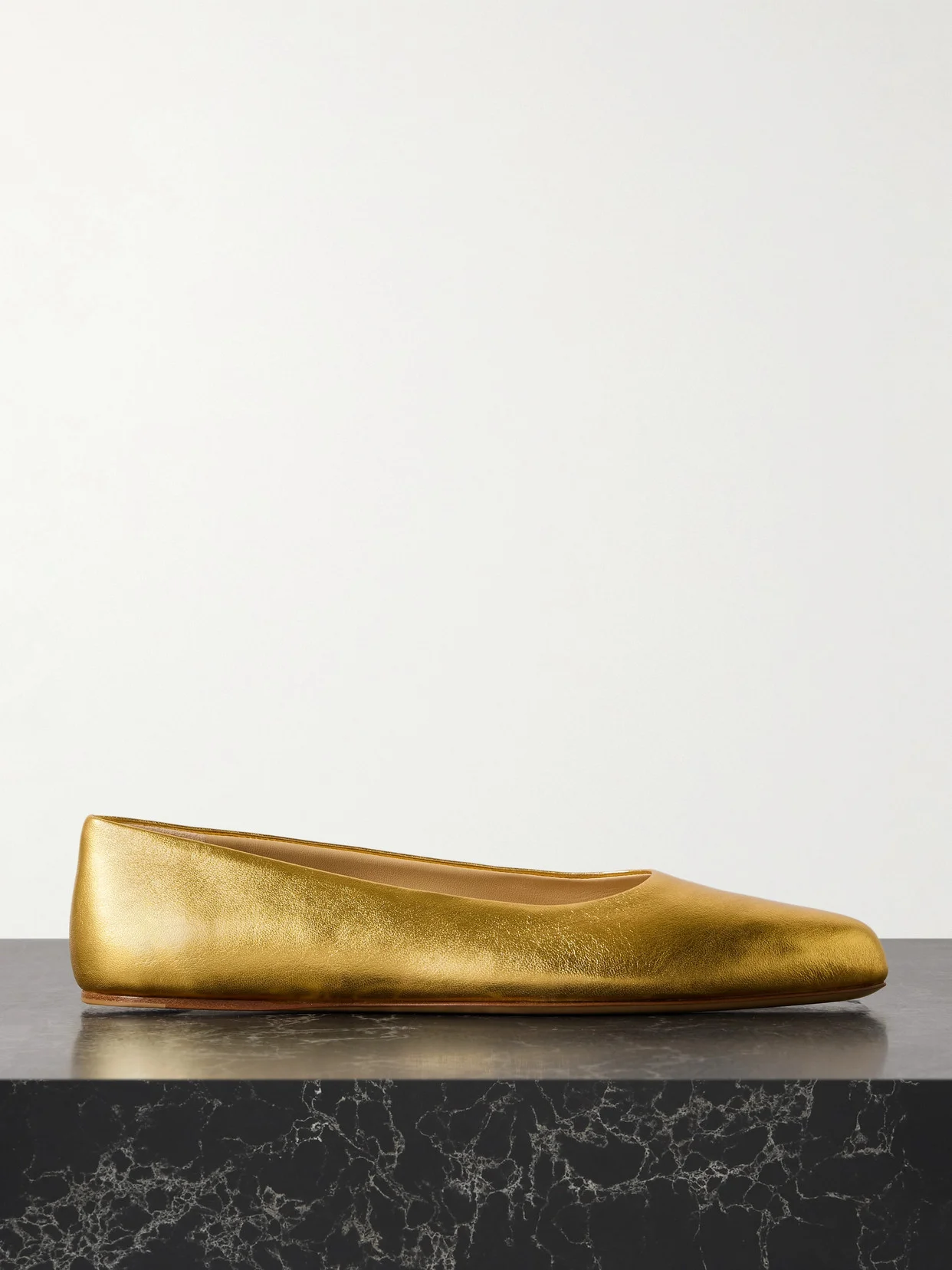 Gabriela Hearst's 'Andre' ballet flats are constructed from supple leather in a shimmering gold shade that allows you to appreciate the elegant shape. They're set on a slight heel with a rounded vamp and come to a neat almond toe. Style yours with tailored pants or jeans.