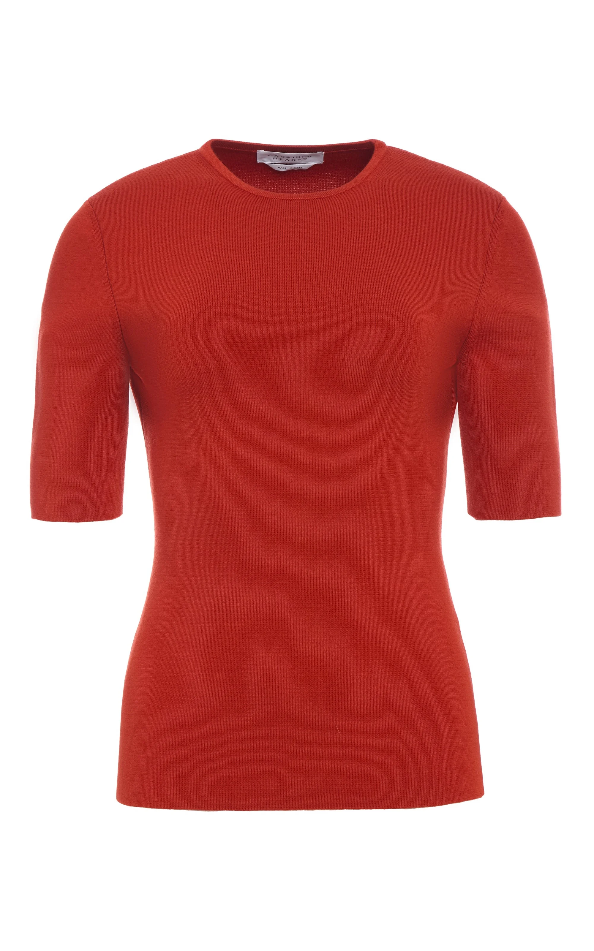 Knit in a full milano stitch, the Andrius Top has a density that supports the body while still being soft and comfortable to wear. It is made in 100% extrafine merino and pairs beautifully with the Debutante Skirt. Details: - 100% merino wool - Crew neckline - Hip length - Elbow-length sleeves - Pullover style - Made in Italy
