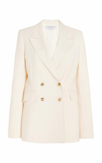 Gabriela Hearst’s signature suit silhouette is made up of a sharply tailored double-breasted jacket with a defined waist paired with gently flared trousers. The Angela Blazer is a double-breasted blazer with a subtle hourglass waist and inspired by traditional men’s tailoring yet cut with a distinctly feminine fit. Shown here with the Vesta Pant. Details: - Double-breasted blazer - Notched lapel - 100% Wool - Made in Italy Size and Fit: Fits true to size. Model is 5'11" and wearing a size IT 38.