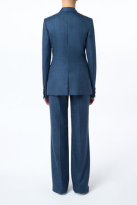 Angela Blazer in Denim Virgin Wool Silk with Linen