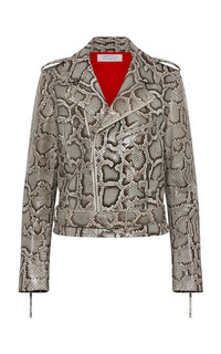 The Anton Biker Jacket offers sleek and edgy sophistication showcasing our implementation of exotic Burmese Python Skin- embodying the sensual power of the snake's symbolism echoed throughout the Fall'25 Collection. In the work of archaeologist Marija Gimbutas, the snake was revered in ancient European homes as a sacred emblem of good fortune, regeneration, prosperity, and fertility. This wild Burmese python is sourced from the Florida Everglades, where it is a highly invasive species. Just one 20-foot python can consume up to 39 endangered animals and over 460 native species in its lifetime. With 90% of native Everglades wildlife populations under threat, the need is great for removing these predators. Details: - 100% Inversa Python Bivivatutus Leather - 100% Red Silk Quilted Lining - Full zip closure - Silver Hardware - Two zip pockets - One button snap pocket - Adjustable Belt - Made in Italy