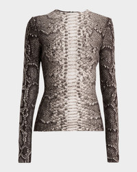 Asha Long Sleeve Python-Print Top