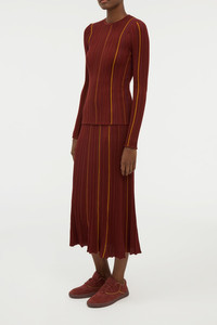 Augie Pinstripe Knit Sweater in Burnt Sienna Merino Wool
