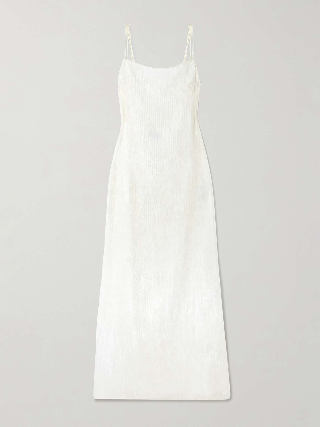 Elegance and ease combined is Gabriela Hearst’s specialty. This ‘Avebury’ maxi dress has been cut in Italy from double-layered silk-plisse that’s airy and has a rich texture. Treat it as a blank canvas, accessorizing with chunky gold jewelry. Size & Fit - Fits true to size, take your normal size - Designed for a slim fit - Mid-weight, non-stretchy fabric - Model is 177cm/ 5'10" and is wearing an IT 40 Model measurements: - Bust: 79cm/ 31" - Waist: 61cm/ 24" - Hip: 89cm/ 35" Details & Care - Ivory silk-plisse - Concealed hook and zip fastening at back - 100% silk - Dry clean