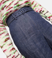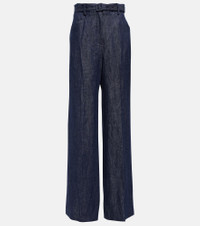 Belted high-rise wide-leg linen pants