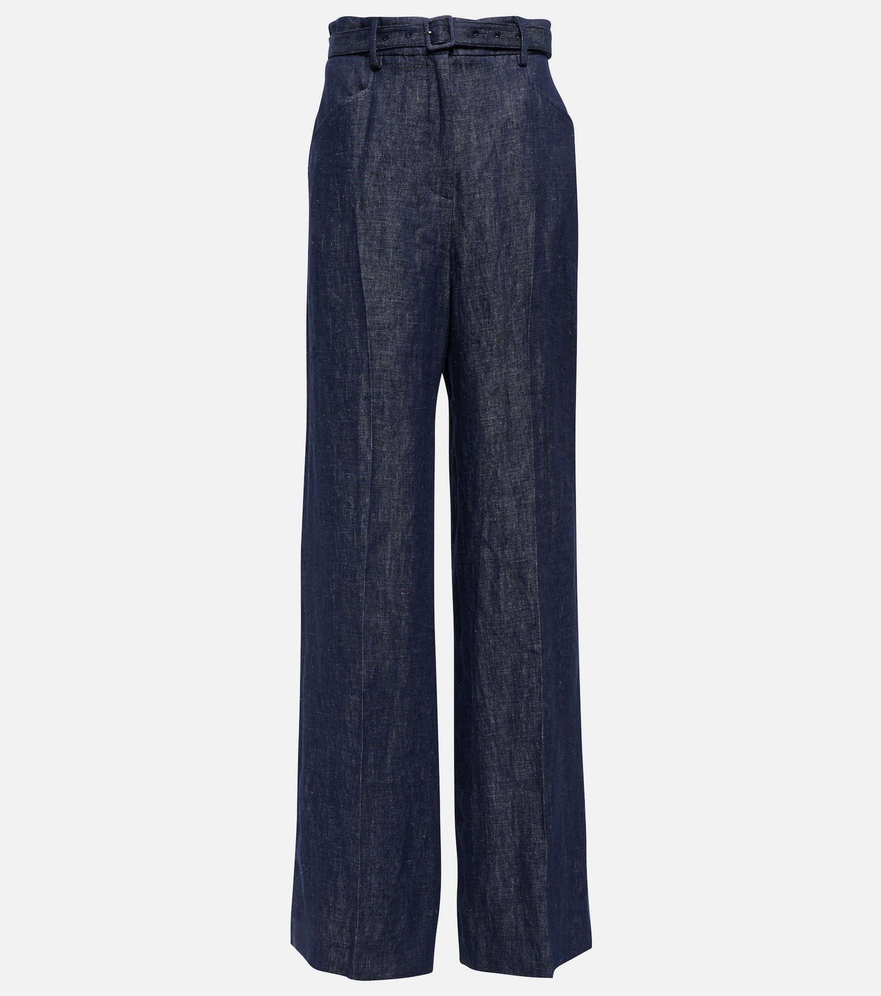 These pants from Gabriela Hearst are made from linen designed to resemble denim. This belted style sits high at the waist and drapes into a wide-leg silhouette. Product Details - Lining: 100% cotton, partially lined - Made in Italy - Closure: zipper, hook fastening - Designer color name: Denim - Material: 100% linen - Pockets: side slit pockets, back pockets - Care instructions: dry clean - Detachable belt - Item number: P00750184 Size & Fit - Fits large to size - we recommend trying one size smaller - Adjustable at the waist - Mid-weight material - Non-stretchy fabric - Wide-leg - High-waisted - The model seen in the picture is 178cm-5'10" and wearing a size IT 38