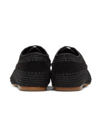 Suede derbys in black. Woven raffia trim. · Almond toe · Lace-up closure · Logo embossed at grained leather footbed · Patent leather sole Part of the Gabriela Hearst x Clergerie collaboration. Supplier color: Black Upper: leather, raffia. Sole: leather. Made in France 221854F120003