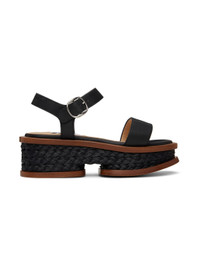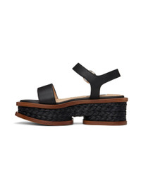 Handcrafted buffed nappa lambskin sandals in black. · Hand-woven raffia trim throughout · Open pointed toe · Strap at vamp · Pin-buckle ankle strap · Logo patch at padded footbed · Buffed calfskin lining · Platform wood midsole · Polished leather sole · Platform: H2.5" Supplier color: Black Upper: lambskin, calfskin. Sole: leather, textile, wood. Made in Italy 241854F124000