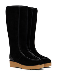 Knee-high suede and buffed leather boots in black. Buffed leather trim throughout. · Almond moc toe ·Shearling lining · Treaded EVA foam outsole in tan Supplier color: Black Upper: leather. Sole: rubber. Made in Italy 222854F115001