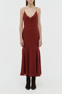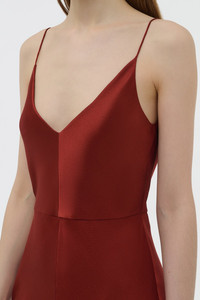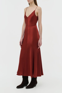 With a sleek v neckline, spaghetti strap details and finishing; the Brigita slip dress celebrates the unique qualities of 100% double satin silk; with lightness and ease this piece skims the wearers form; emphasizing this fabric's fluid drape and inherent softness. Details: - 100% Silk - Concealed back zip - Spaghetti strap silhouette - V neckline - Italian sizing - Made in Italy