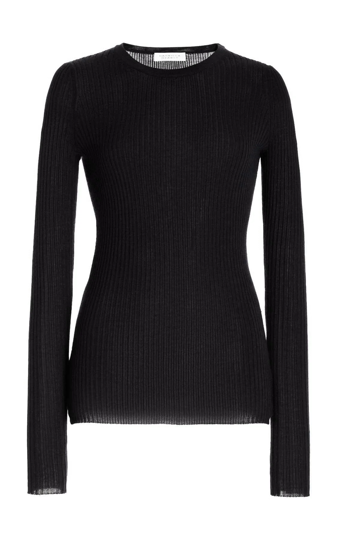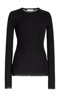 The Browning Crew Neck Sweater in fine rib cashmere silk yarn. This slim, flattering silhouette elongates the form to create the perfect layering piece. Details: - 70% Cashmere, 30% Silk - Made of Italian Yarns Size and fit: Relaxed fit. Fits true to size. Model is 5'11" and wearing a size Small.