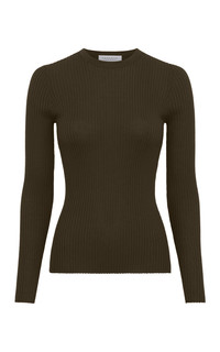 The Browning Crew Neck Sweater is in fine rib cashmere silk yarn. This slim, flattering silhouette elongates the form to create the perfect layering piece. Details: - 70% Cashmere, 30% Silk - Crew neckline - Fitted - Ribbed knit - Pullover style - Made of Italian Yarns Size and fit: Fits true to size. The model is 5'11" and wearing a size S.