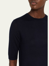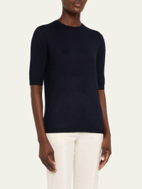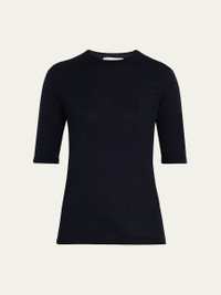 Gabriela Hearst "Brunner" basic T-shirt in cashmere blend Crew neckline Elbow sleeves Slim fit Ribbed cuffs and hem Pullover style Cashmere/silk Dry clean Made in Italy Online Inquiries: BGS21_BB57K| Store Inquiries: #5045850