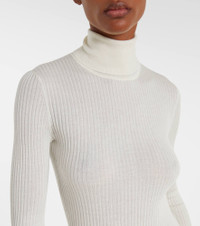 Gabriela Hearst's designs are all carefully constructed, showcasing an uncompromising dedication to quality and craft. Ribbed-knit from cashmere and silk, this sweater is a fitted style with a classic turtleneck for optimal warmth. Product Details - Material: 70% cashmere, 30% silk - Care instructions: dry clean - Made in China - Designer color name: Ivory - Item color: white - Collar: turtleneck - Item number: P01077151 Size & Fit - True to size - Fitted - Stretchy fabric - Falls to the hip - The model seen in the picture is 178cm-5'10" and wearing a size XS