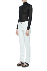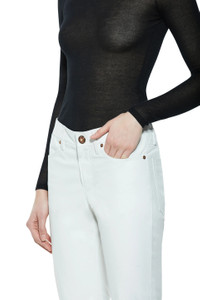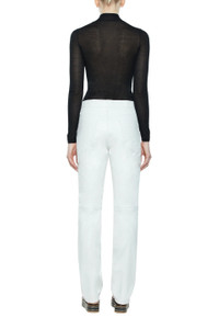 This classic fit jean style is completed with stitch details and rivets. Our signature custom button closure hardware in rose gold, wood and leather completes the look. Interpreted here in slick dakota leather for a sharp look. Details: - 100% Lamb Leather - Made in Italy Size and fit: Relaxed fit. Fits true to size. Model is 5'11" and wearing a size IT38.