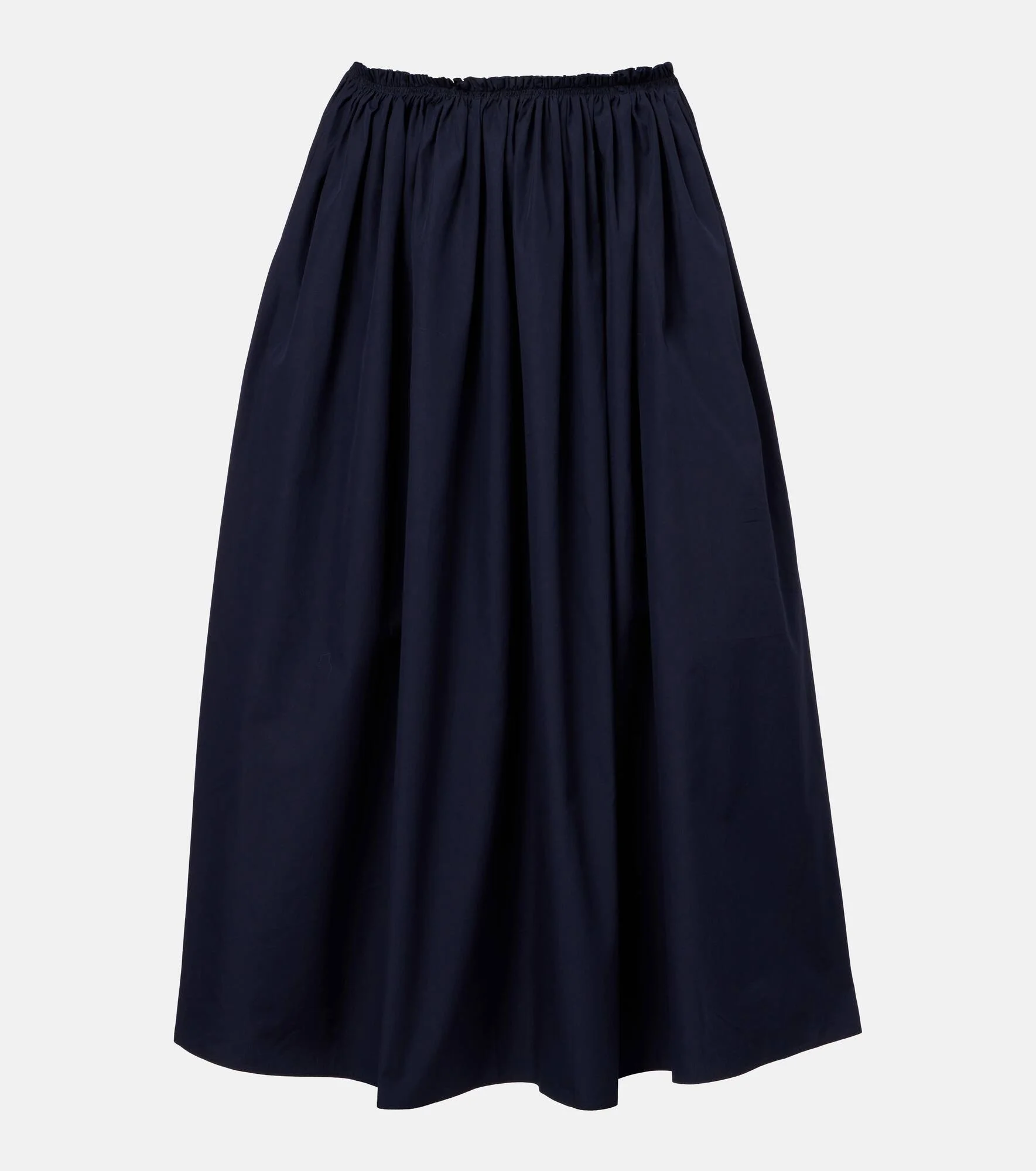 The Chiara midi skirt from Gabriela Hearst is crafted in Italy from crisp cotton poplin. The raw-cut waistband features a fine, multi-tucking detail to create a full but flattering silhouette. Product Details - Material: 100% cotton - Care instructions: dry clean - Made in Italy - Designer color name: Navy - Item color: blue - Pockets: side slit pockets - Closure: zipped side - Item number: P01035861 Size & Fit - True to size - Non-stretchy fabric - Sits low on the hips - The model seen in the picture is 178cm-5'10" and wearing a size IT 40