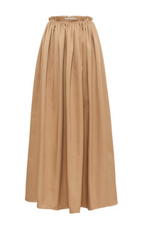 The Chiara skirt is created with a fine multi-tucking detail at the waistband to create a full but flattering shape. Crafted in rare Sea Island cotton poplin, unique as it is grown on small local farms in Barbados and irrigated solely with rainwater. Details: - 100% Sea Island cotton - Dual pockets - Pleated detail - Midi Length - Made in Italy
