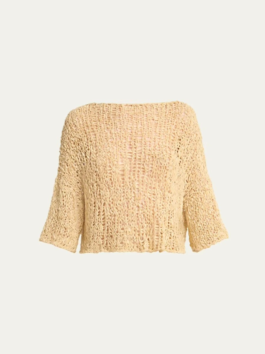 The "Chrysenta" top from Gabriela Hearst is crafted from a cashmerelinen blend tape knit High neckline 3/4 sleeves Drop shoulders Loose fit Cropped length Pullover style Silk/cashmere/linen Professional cleaning recommended Made in Italy SIZE amp; FITModel measurements: 5'10" tall Model is wearing a US size 4/Small