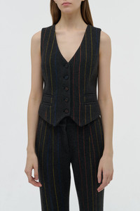 Coleridge Vest in Charcoal Multi Pinstripe Wool Cashmere