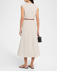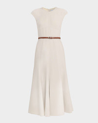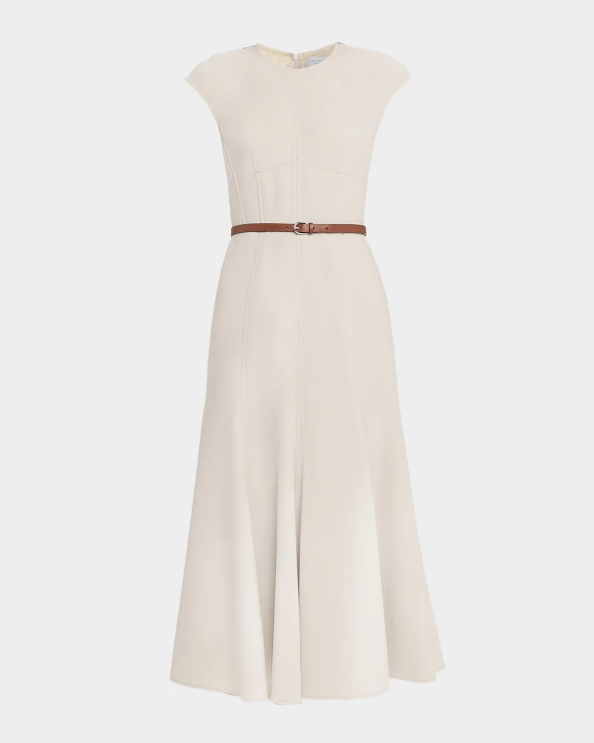 Gabriela Hearst "Crowther" dress is crafted from wool crepe featuring corset-inspired seam details Round neckline Cap sleeves A-line silhouette Hem falls below the knee Invisible back zip Wool Made in Italy