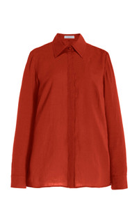 The Cruz shirt cuts a sharp, clean silhouette and boasts a proud collar and button through tab detail at the cuff. The lighter Aloe linen shirting fabrication lends a relaxed ease to this signature style. Details: - 100% Linen - Made in Italy Size and Fit: Fits true to size. Model is 5'11" and wearing a size 38.
